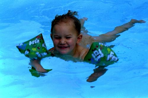 Noas erste alleinschwimmerei auf Mauritius, mit 2 Jahren